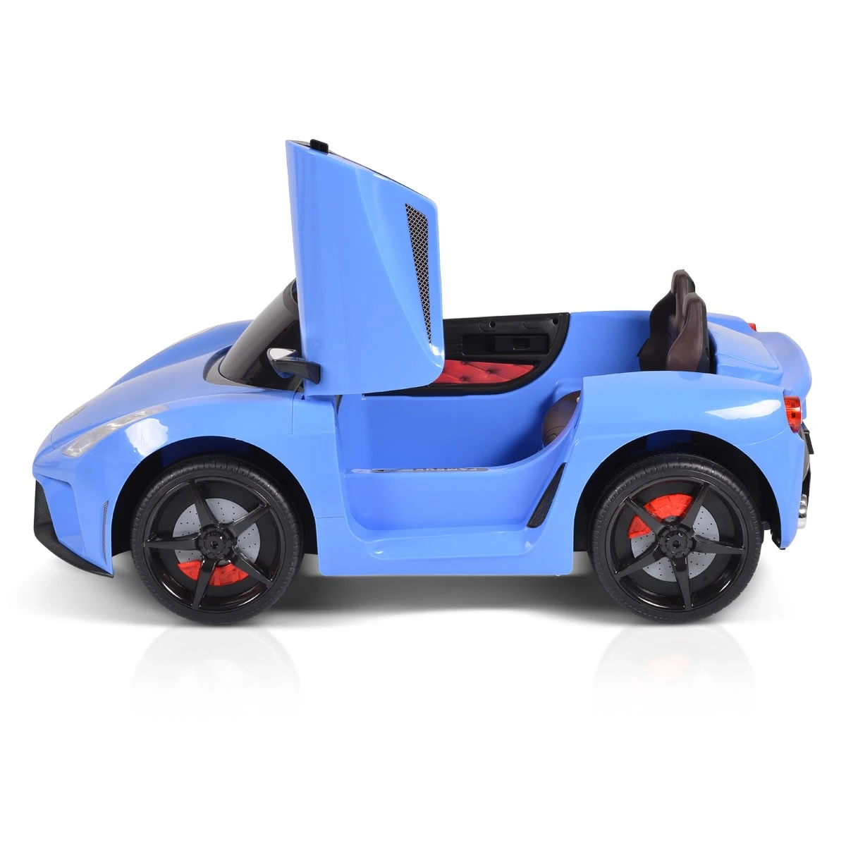 Das Kinder Elektroauto Famous ist aus dem Hause Moni. Es ist optimal für Kinder ab drei Jahren bis acht Jahren oder einem Maximalgewicht von 30 Kilogramm. Die Flügeltüren lassen sich öffnen, um das Einsteigen zu erleichtern. Mit zwei verschiedenen Geschwindigkeiten kann der Fahrspaß beginnen. Die Steuerung erfolgt über ein Fußpedal und das Lenkrad. Die Eltern können das Auto ebenfalls mit der mitgelieferten Fernbedienung steuern. Das Elektroauto ist mit LED-Beleuchtung vorne und hinten sowie Kunststoff-Reifen ausgestattet. Für die Sicherheit ist ein Hüftgurt am Ledersitz. Eine Musikfunktion mit Lautstärkeregler, ein MP3- sowie ein USB-Anschluss runden das Musikangebot ab.