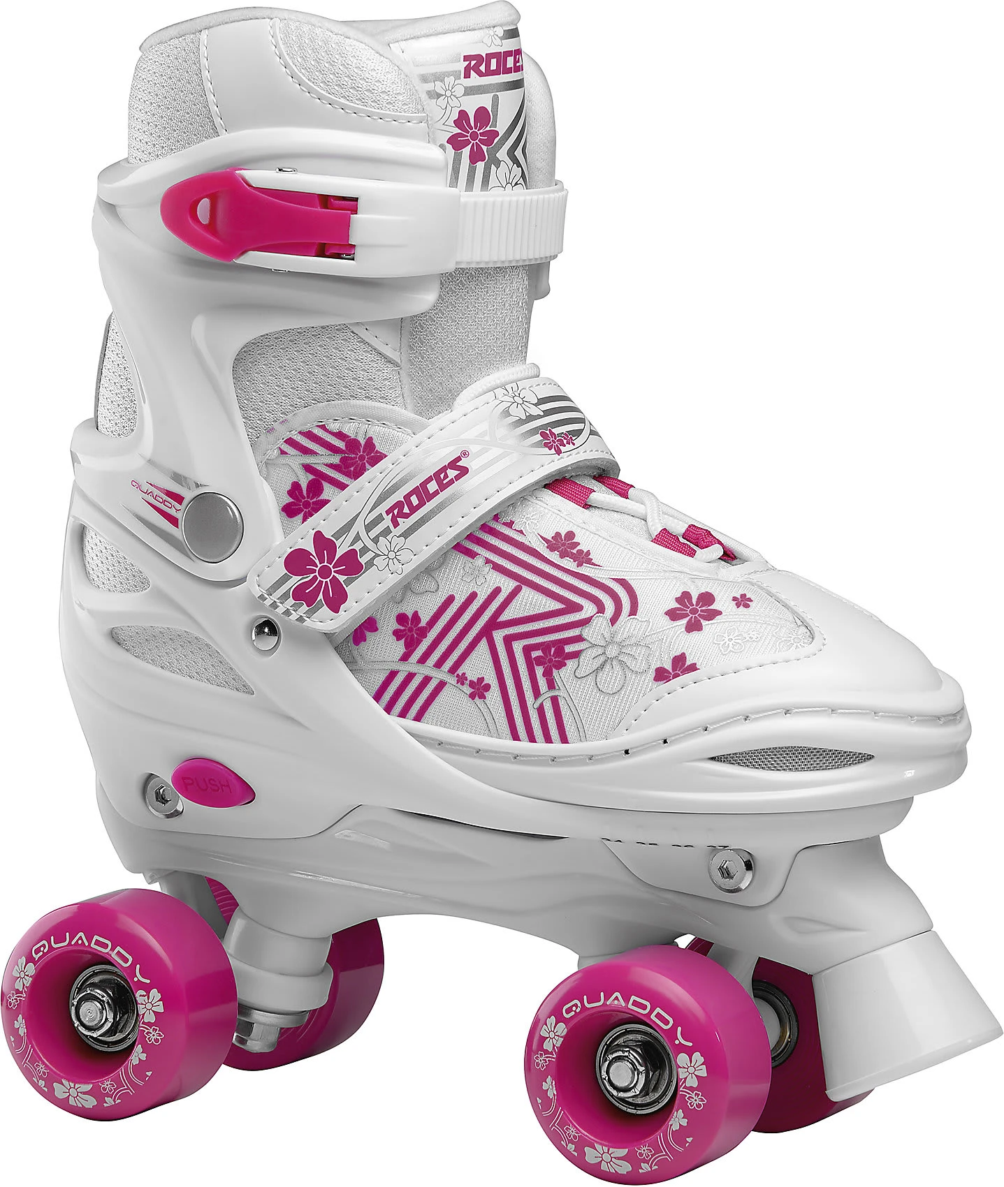 Für Skate-Fans und Starter*innen: Die Rollschuhe „Quaddy“ von Roces haben ein sportives Design und punkten mit leichtläufigen Rollen mit ABEC 5 Kugellagern und einem klassischen Stopper für die nötigen Bremsmanöver. Der angenehm gepolsterte Schaft und die praktischen Schnallen mit Sicherheitsverschluss sorgen für einen angenehmen und sicheren Sitz und ermöglichen eine optimale individuelle Anpassung. Zudem garantiert die Semi-Soft Konstruktion für Stabilität und festen Stand, der besonders bei Einsteigern wichtig ist. Mit den Skates steht Cruise-Vergnügen nichts mehr im Wege und die Rollschuhe wachsen mit, denn sie lassen sich über mehrere Schuhgrößen anpassen. Schutzausrüstung anlegen und los geht der Rollerspaß!